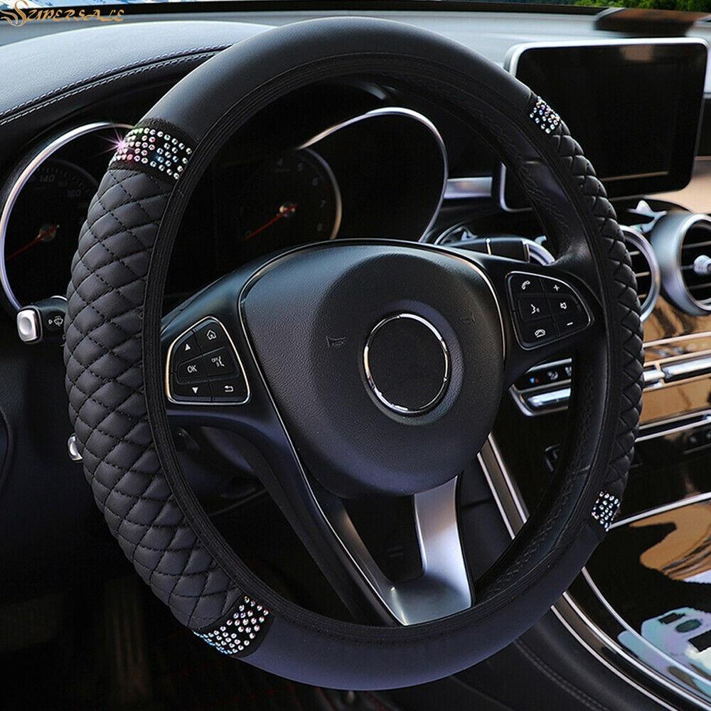 Capa Para Volante De Carro De Couro PU/Diamante/Preta