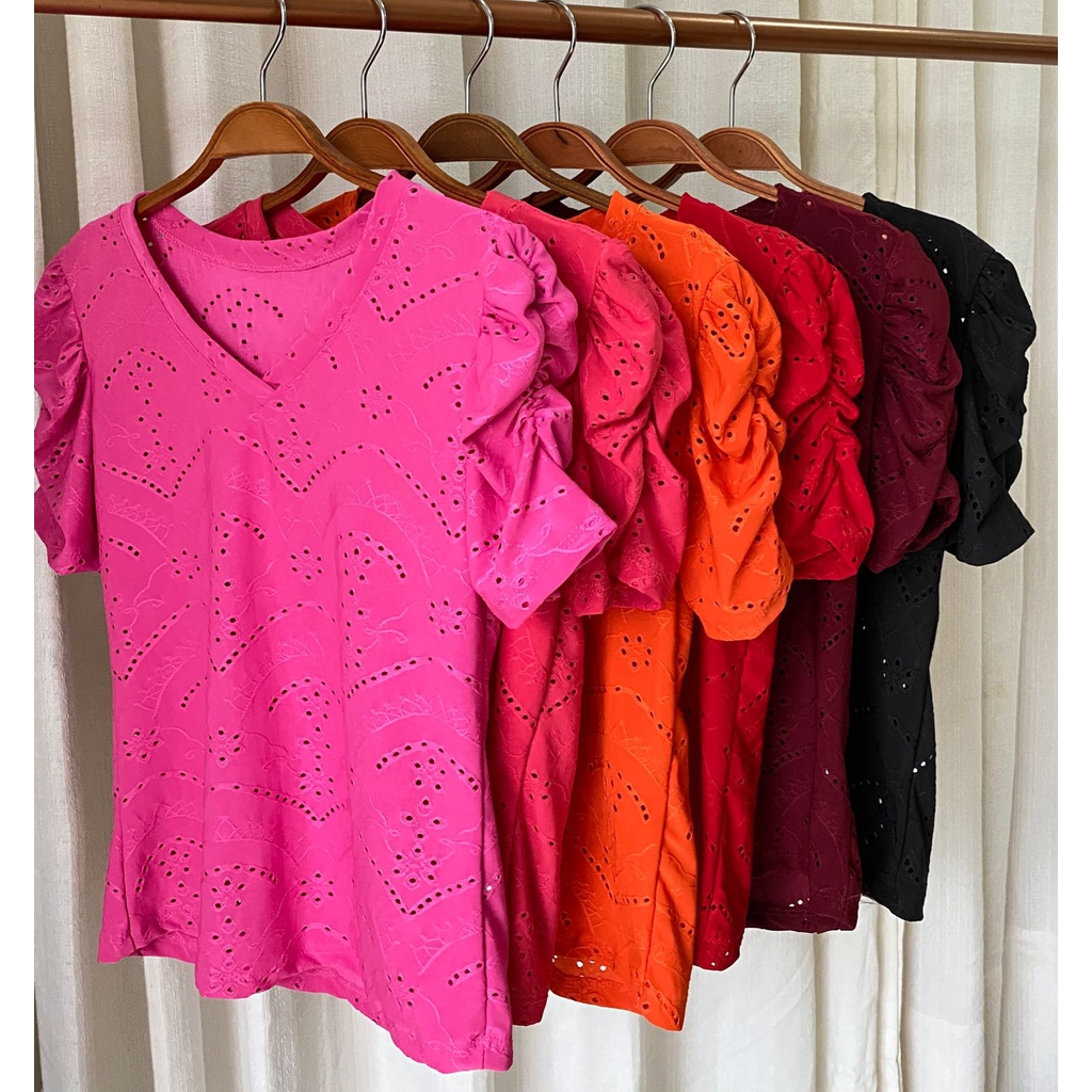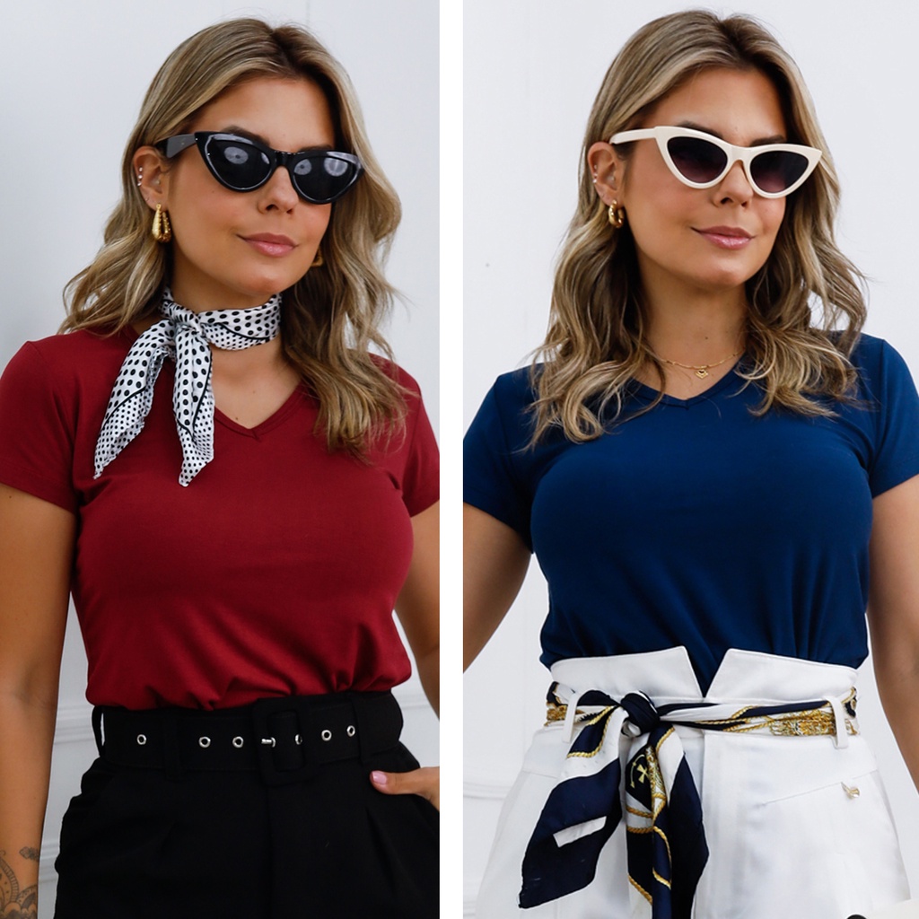 kit 2 Blusa Feminina Viscose Gola V Manga Curta Básica Casual