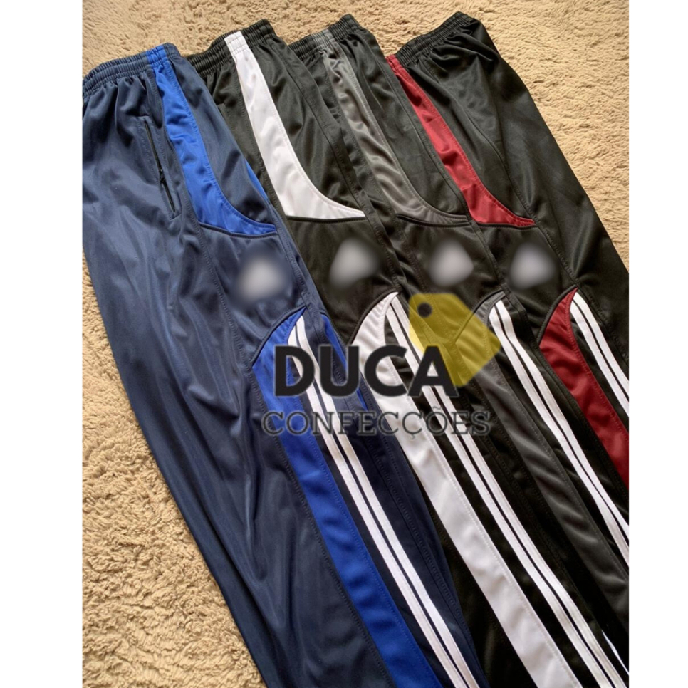 Calça masculina para atividade física em academia e corrida com cordão listras na lateral e bolso com zíper
