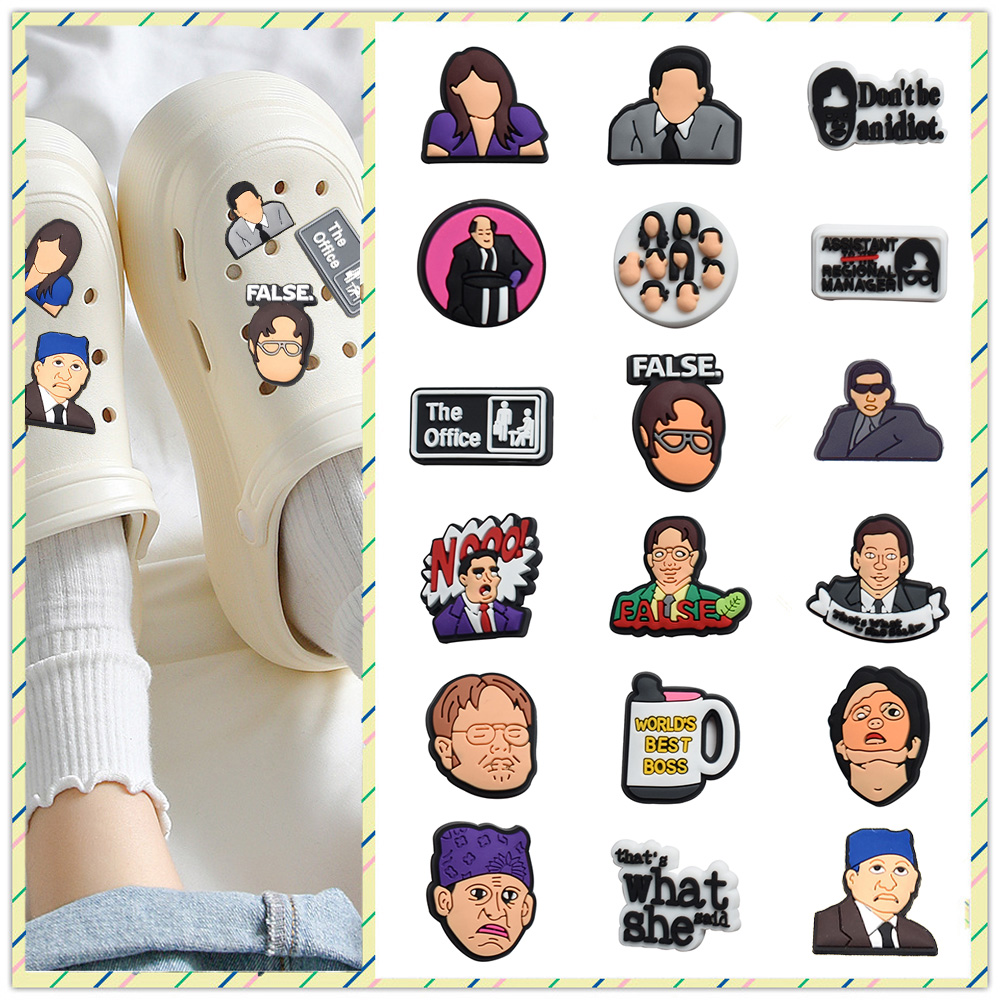 Novo TV Americana The Office Series Crocs Jibbitz Shoe Charms For Man Decoração Diy Shoes Beach Bag Acessórios De Aniversário E Presente De Natal Para Mulheres Homens