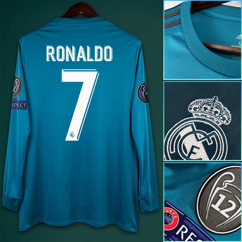 17-18real Madrid Terceira Camisa de Futebol de Manga Longa Long Sleeve No. 7 Cristiano Ronaldo Retro Camisa de Futebol
