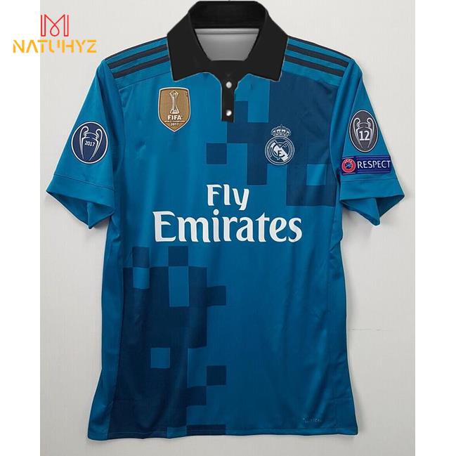 Camisa RONALDO 7 17 Real Madrid Terceira Liga dos Campeões 2017-18 | Camisola Retro 10 MODRIC 7 9 BENZEMA/UCL 2B8 L. TKMR