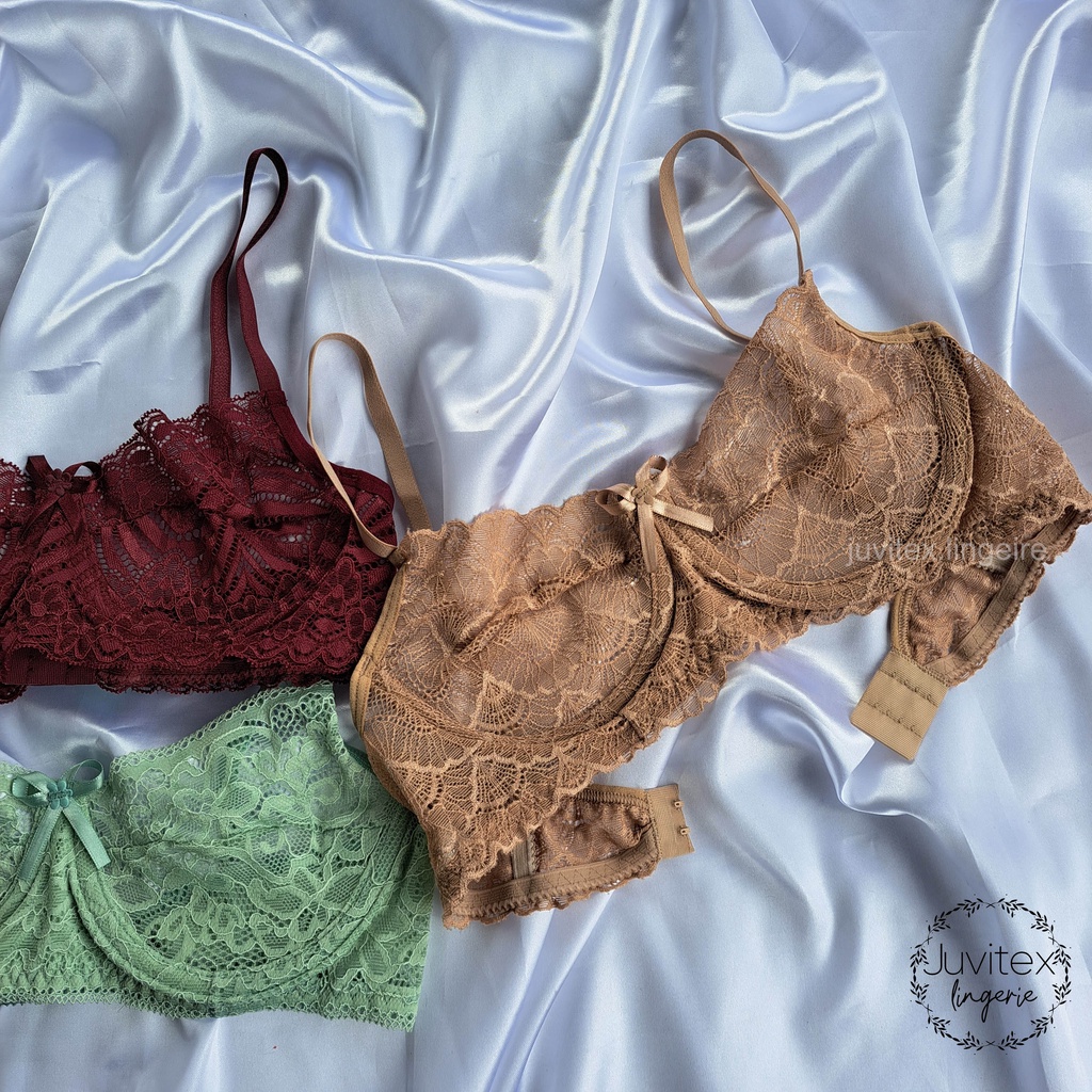 kit 3 sutiã de renda sem bojo com aro de metal plus size lingerie sutian renda Premium -3 Kaylane