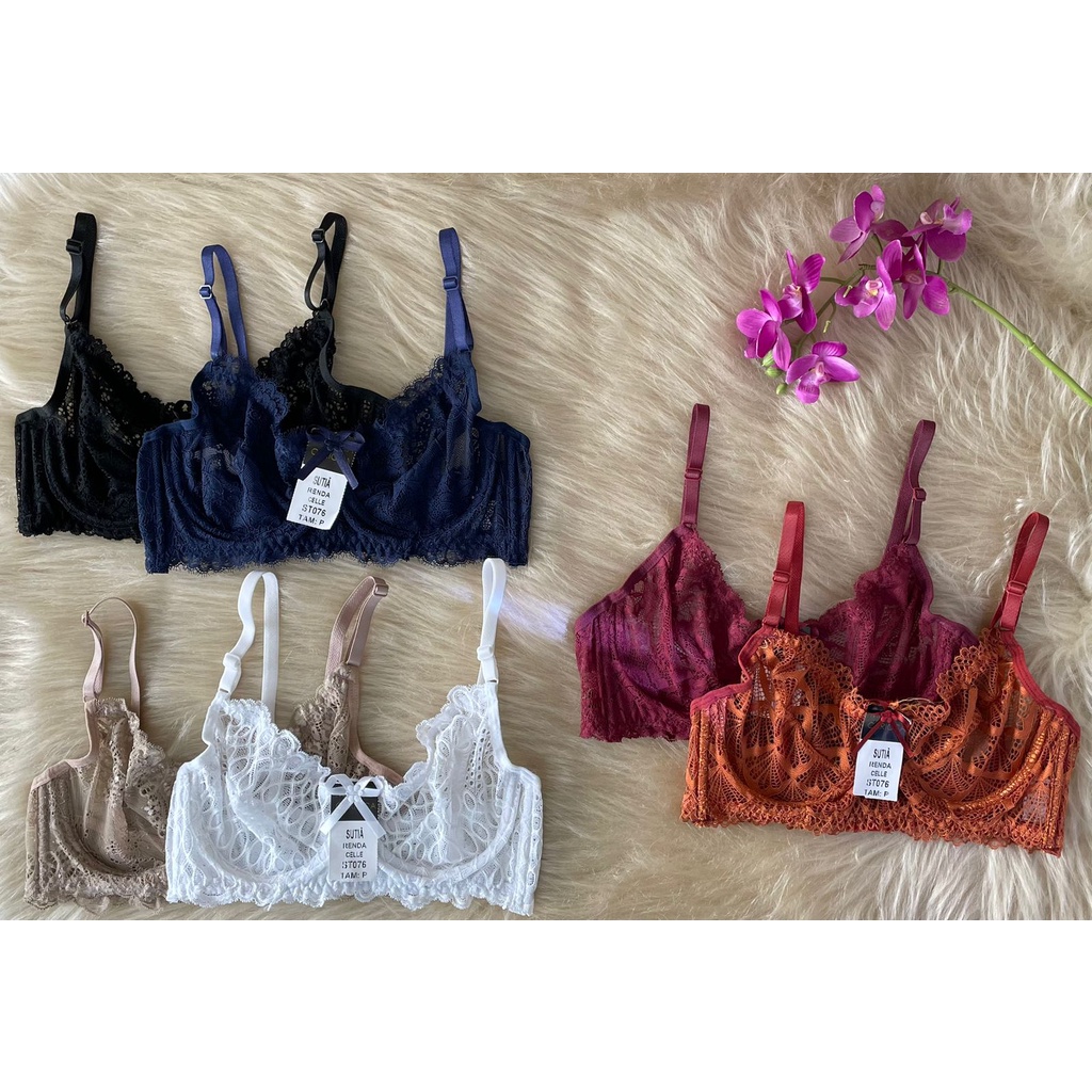 Kit 3 sutian sutiã de renda com aro de metal sem bojo (kit 3 kaylane)