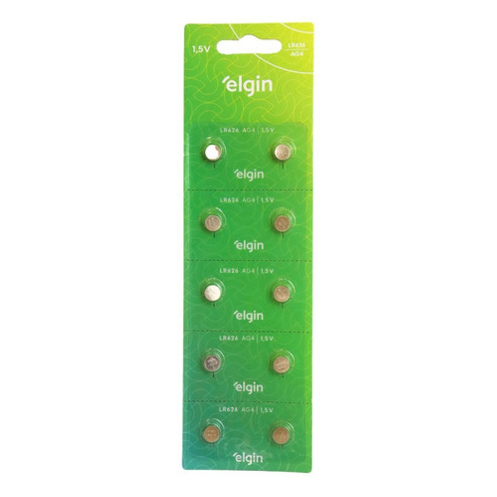 10 Baterias Alcalinas LR 626 AG4 376 377 1,5V Elgin 1 Cartela (Blister com 10) Pilha LR 626