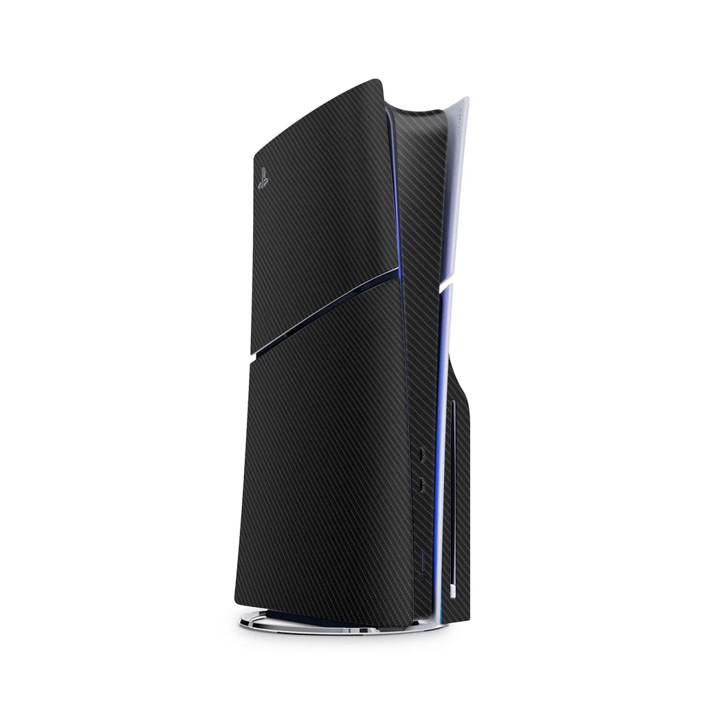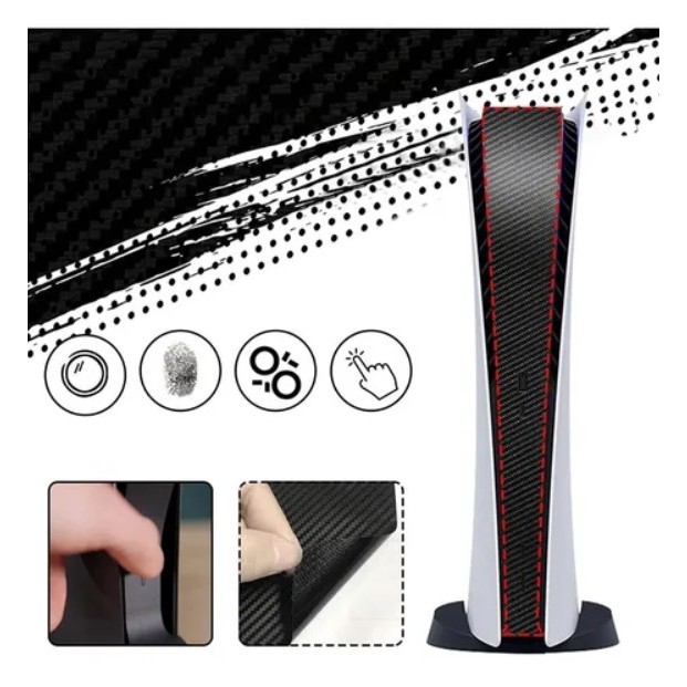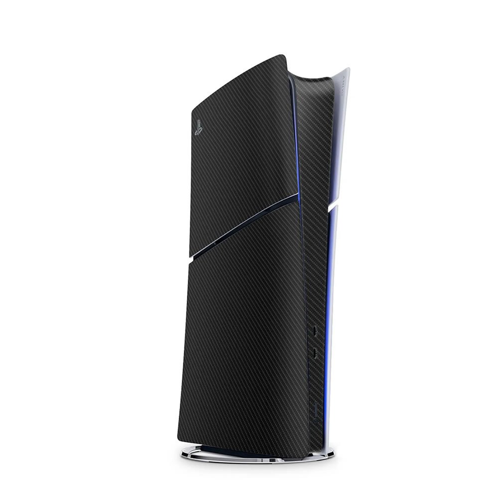 SKIN ADESIVO PLAYSTATION 5 VERSÃO DISCO CONSOLE + 2 SKIN PARA CONTROLE FIBRA DE CARBONO PRETO