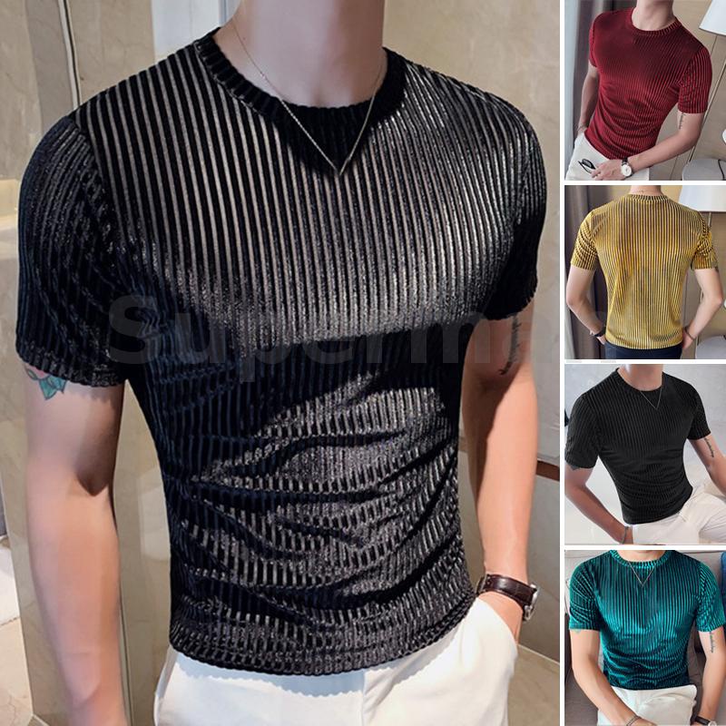 SUPER-M Camiseta De Moda Masculina De Veludo De Manga Curta Com Gola Redonda Solta Casual