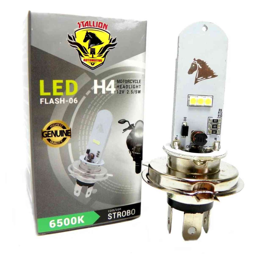Lâmpada Farol Led H4 6500k Super Branca Stallion Cavalinho Com Strobo Efeito Xenon