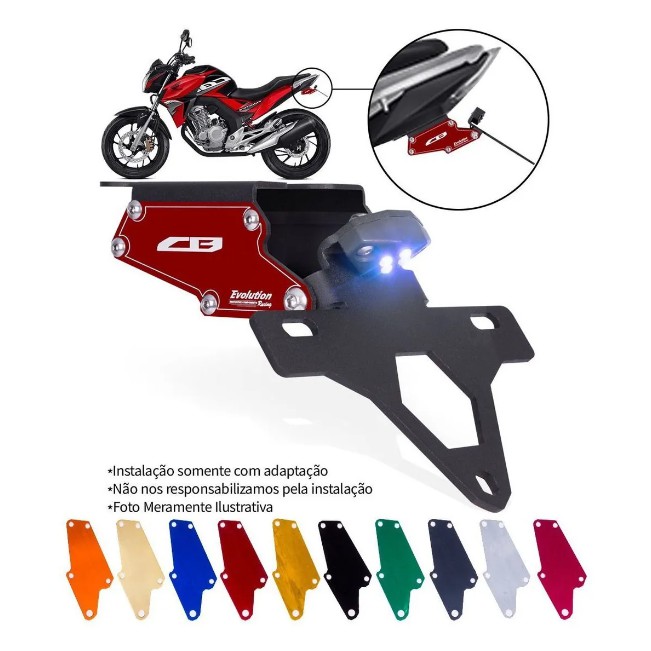 Eliminador de Rabeta Articulado CB Twister 250 2016/2021 + Parafuso de Placa Cores Honda Suporte Placa Twister250 CB250