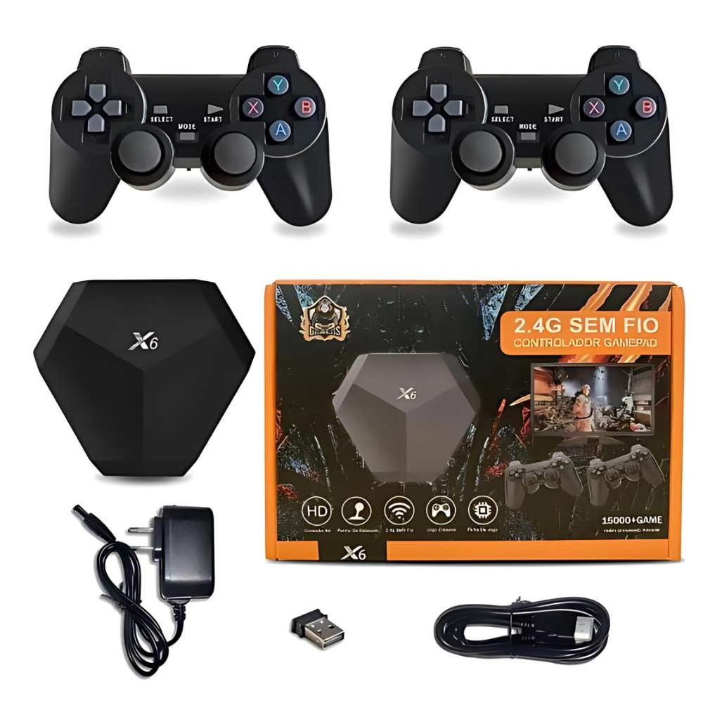 Video Game 4K HD 15 mil jogos Console, +2 Controles X6 Controlador Sem Fio Mini Game Box Saída HD AV
