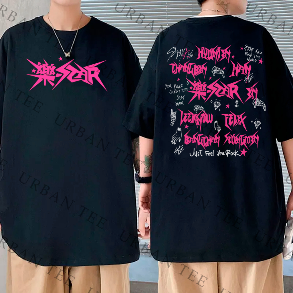 Camiseta Basica Algodao Stray Kids Rockstar Just Fell The Rock Album Kpop Unissex