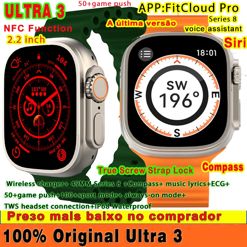 Original Ultra 3 Smartwatch 49mm IWO Series 8 Bússola NFC Siri Jogo Bluetooth Chamada JS Watch Ultra
