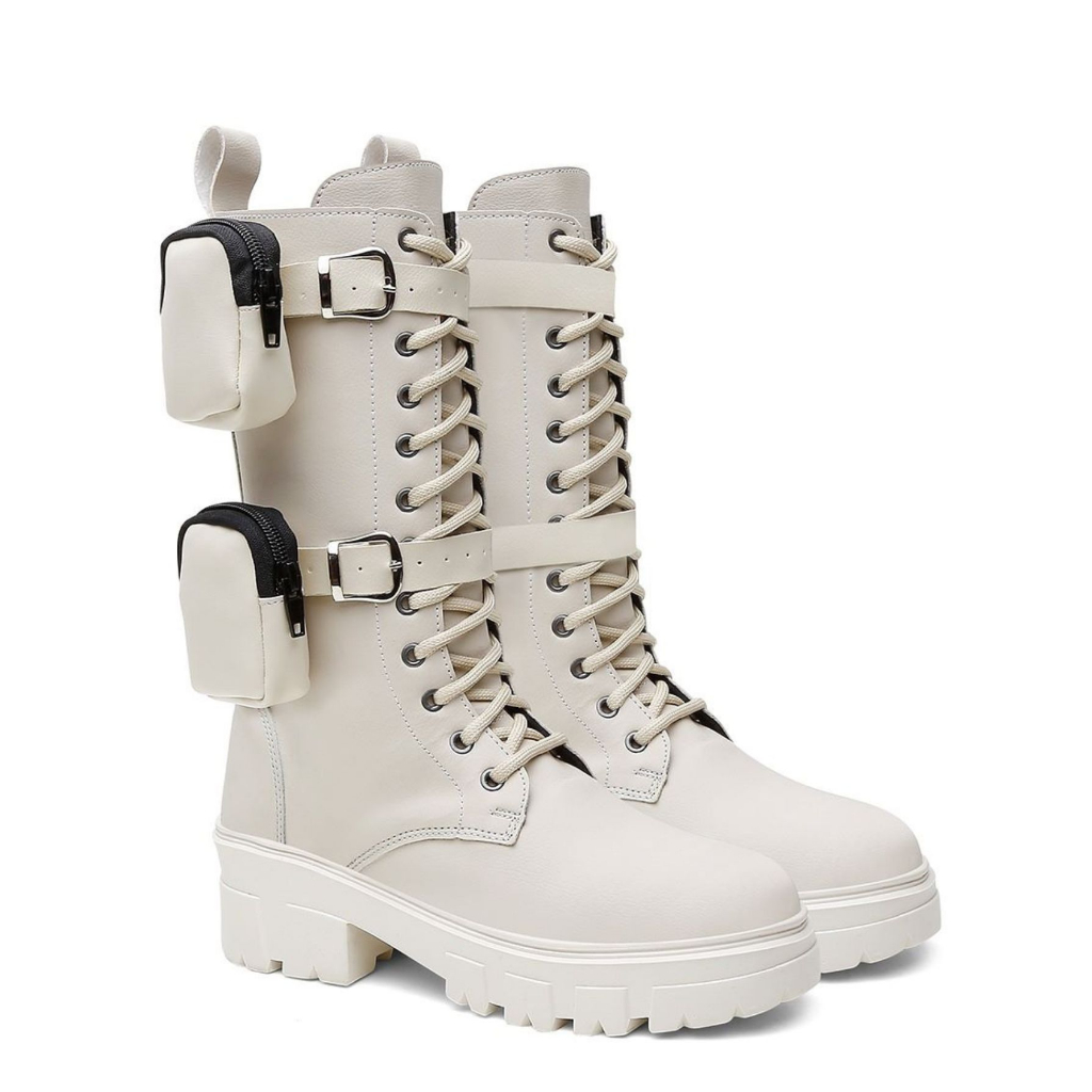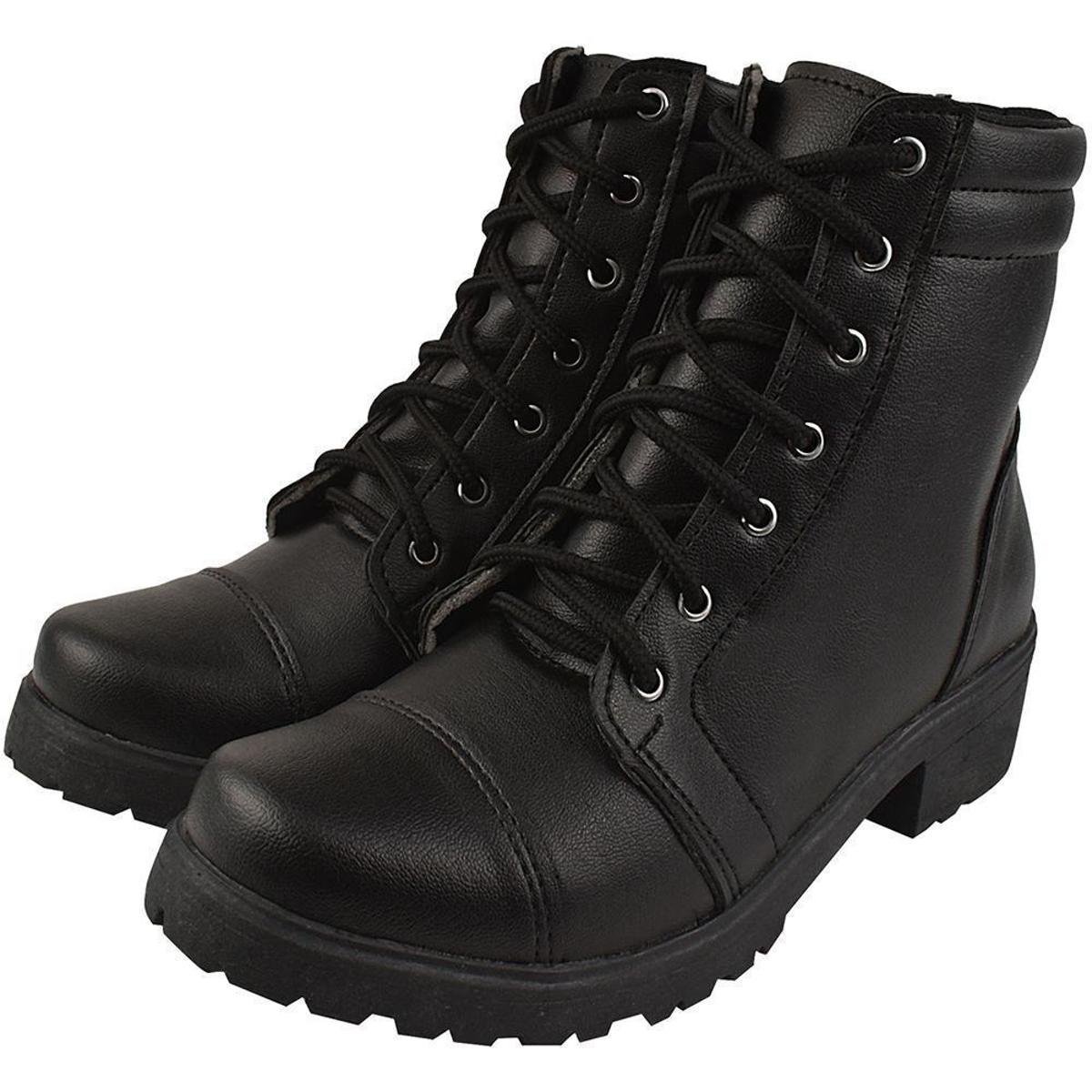 Bota Coturno Militar Feminino Blogueira Cano Alto Com Cadarço Sola de Borracha Antiderrapante 202-GG