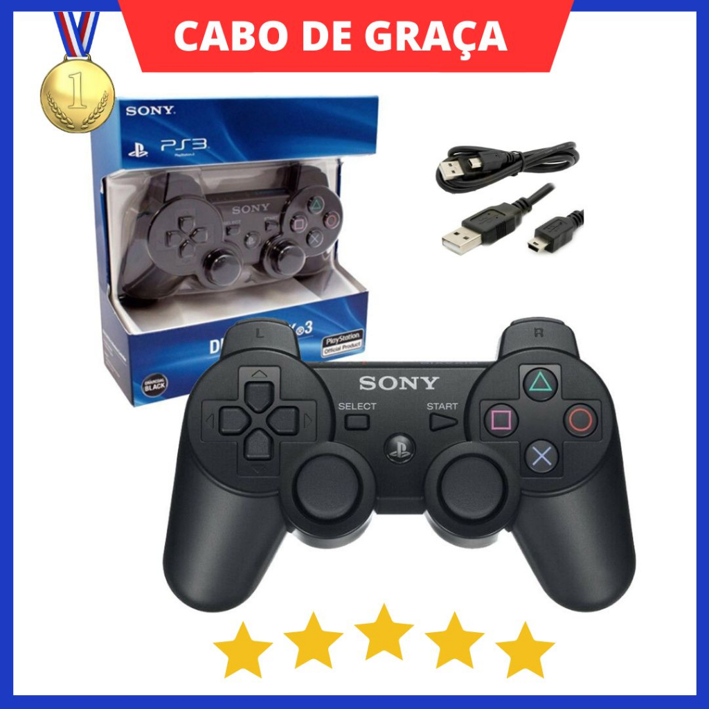 Controle PS3 Original Sony Sem Fio | Controle PlayStation 3 Joystick + Cabo Gratis