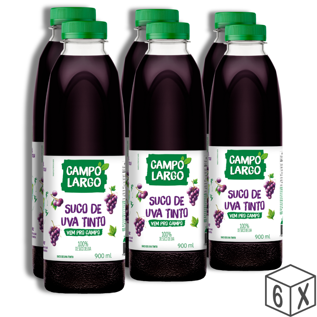 Pack 6 unidades Suco de Uva Integral Campo Largo 900ml - Kit com 6x900ml