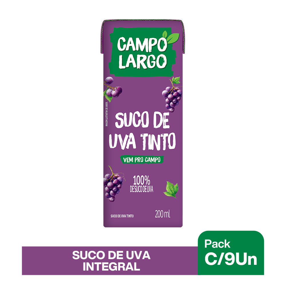 Suco De Uva Integral Campo Largo Caixa 200ml Pack C/9Un