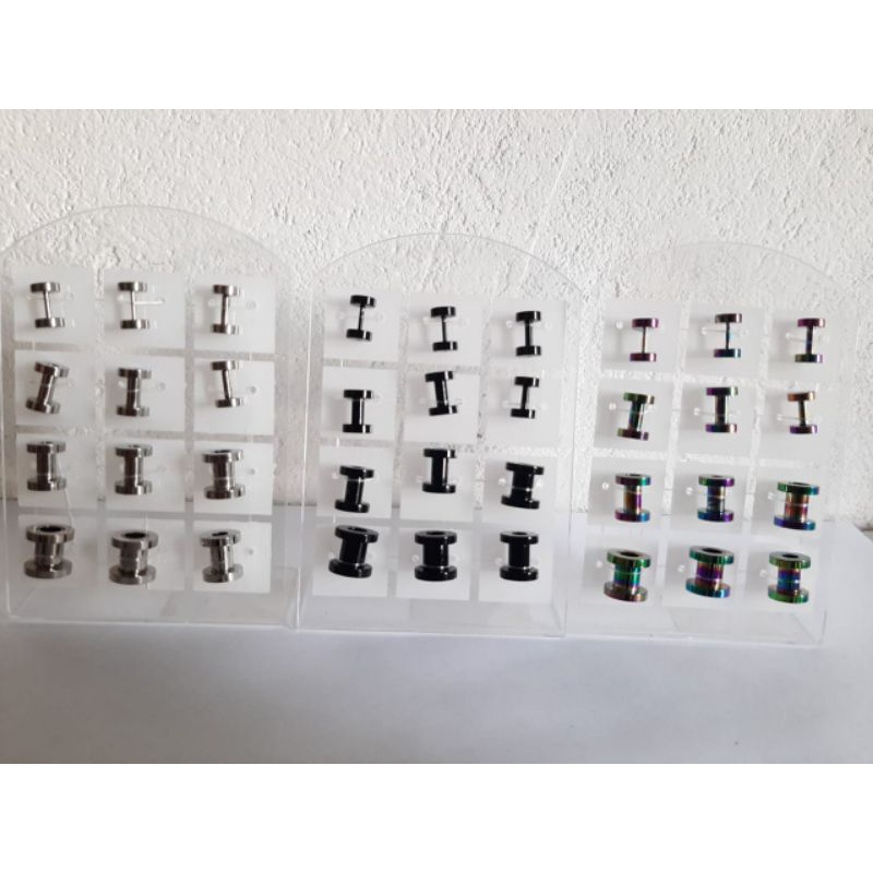 kit cartela de alargador preto prata furta-cor metal tamanho 1mm 2mm 3mm 4mm 5mm 6mm