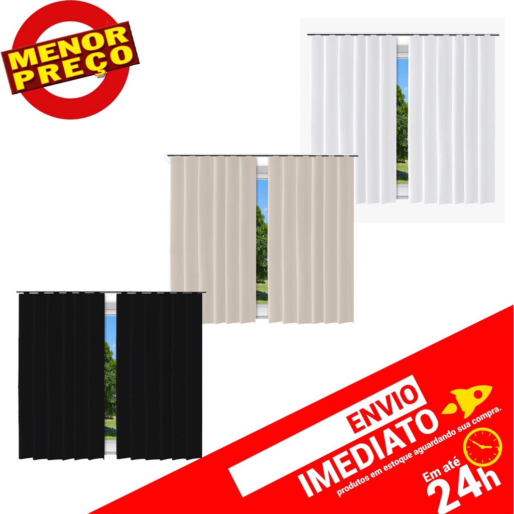 Cortina Blecaute Blackout c/ Voil Corta luz 100% PVC 280x260cm Com Ilhós Para Varão Quarto Sala Escritório - Envio Imediato