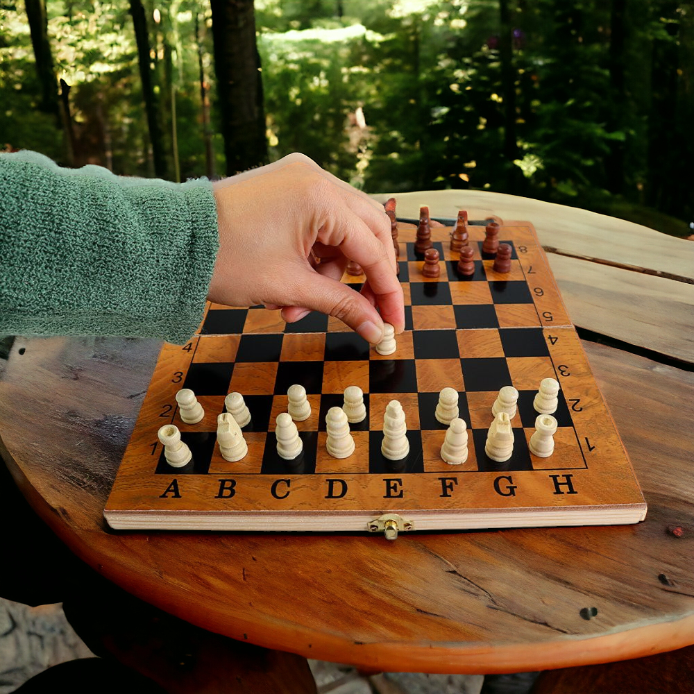 Jogo de Xadrez Maleta 3 em 1 de Madeira Tabuleiro Dobrável