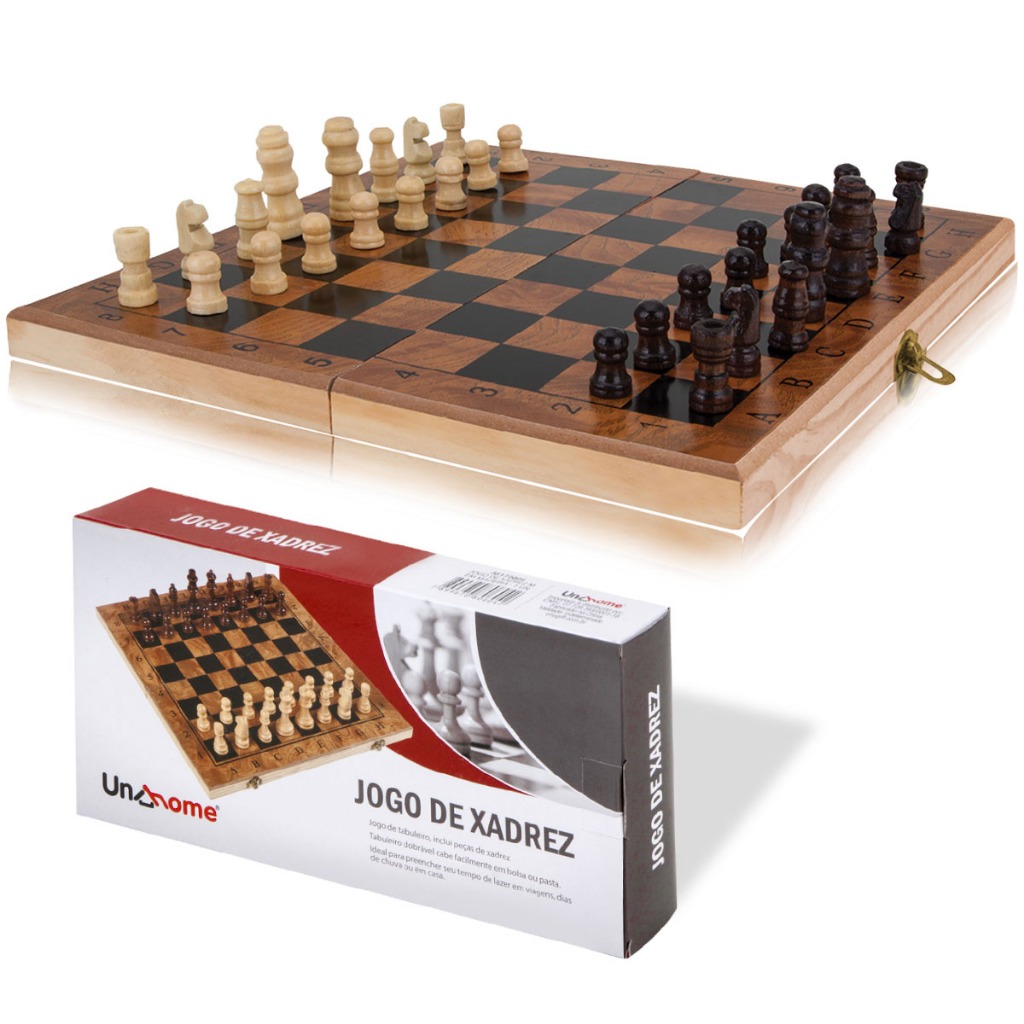 Jogo de Xadrez Tabuleiro de Xadrez em Madeira Dobrável UnyHome