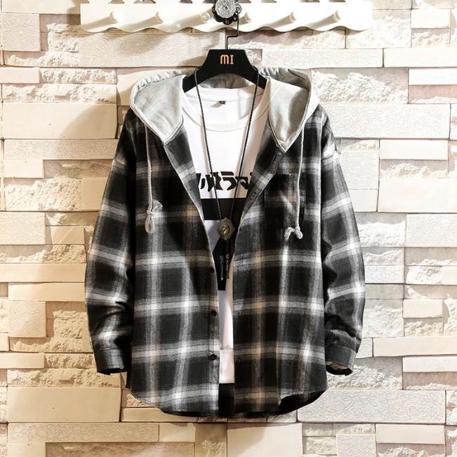 (Liu) Jaqueta Masculina Com Capuz Xadrez Para Outono / Versão Coreana Da Tendência De Ensino Médio Para Estudantes / Outono