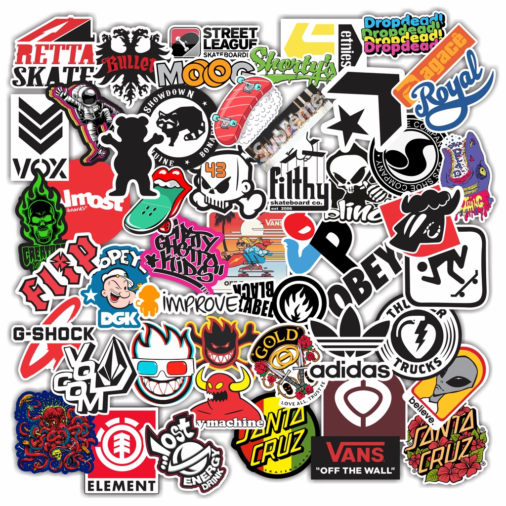 50 Peças Adesivo Sticker de vinil Impermeável Desenho Marcas de Skate Surf Notebook A prova D' Agua 8cm