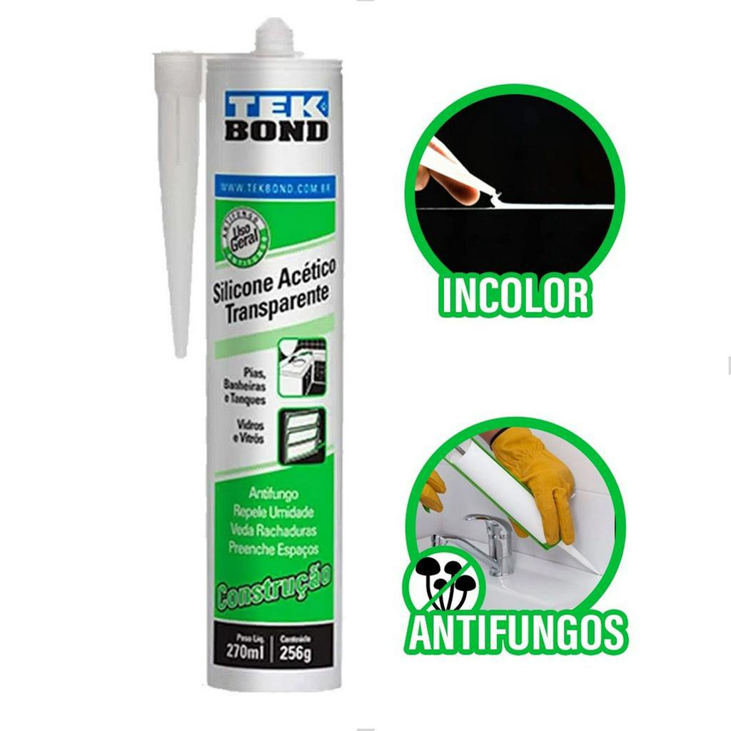 Silicone Acético TekBond Transparente Vedação Construção 270ml/256g