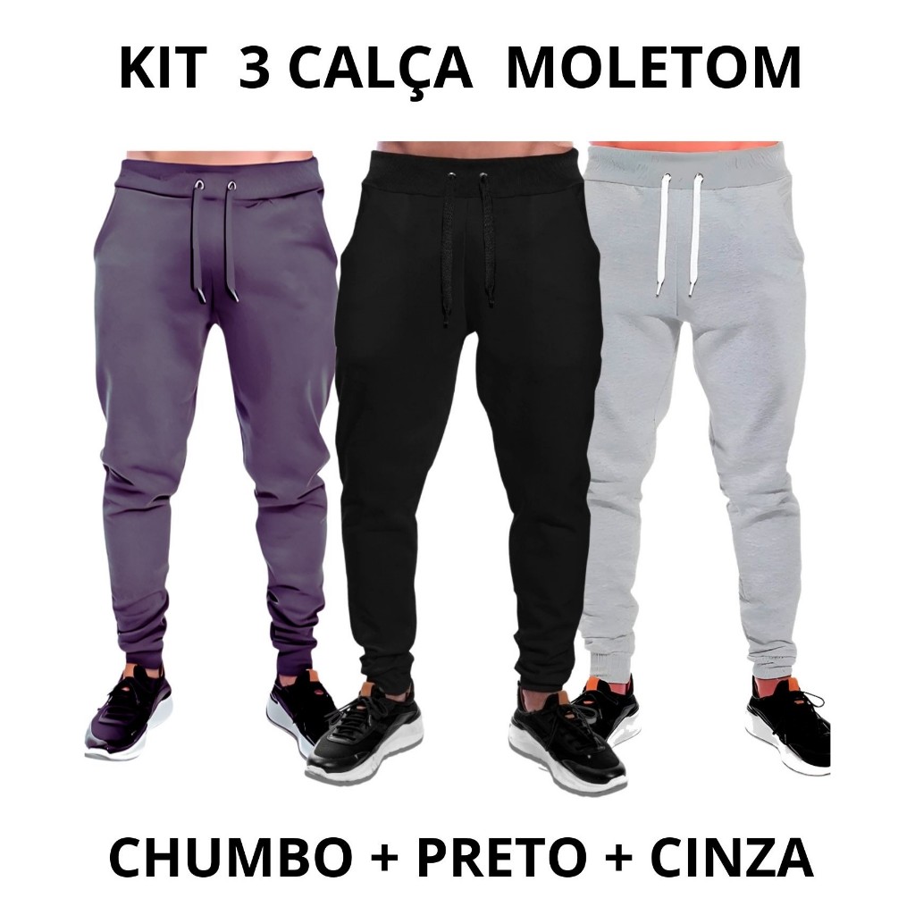 kit 3 Calça de moletom pelúcido masculino estilo jogger academia ,caminhada e casual muito confortável