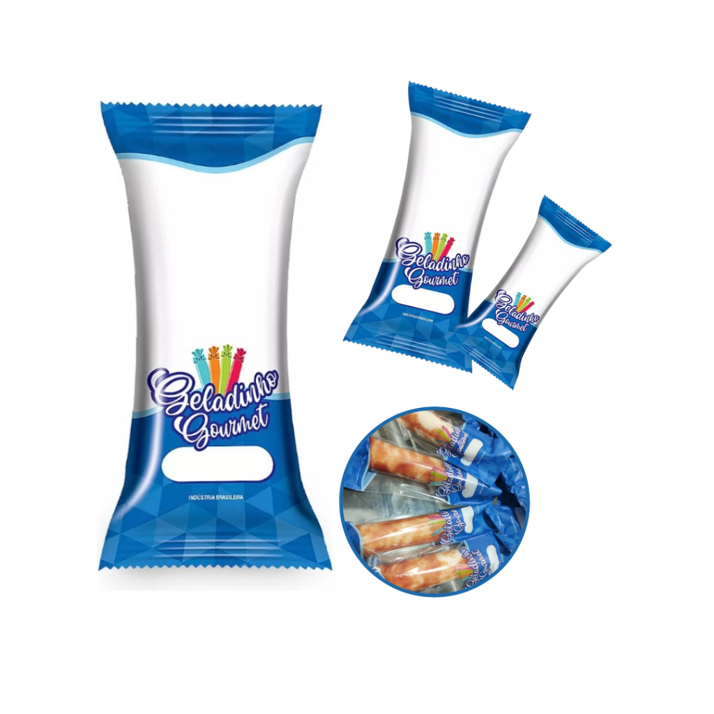01 PACOTE Embalagem Higiênica bopp para geladinho gourmet sacolé juju dindin chup-chup azul 7x19 - 01 pacote contem entre 260/270 unidades