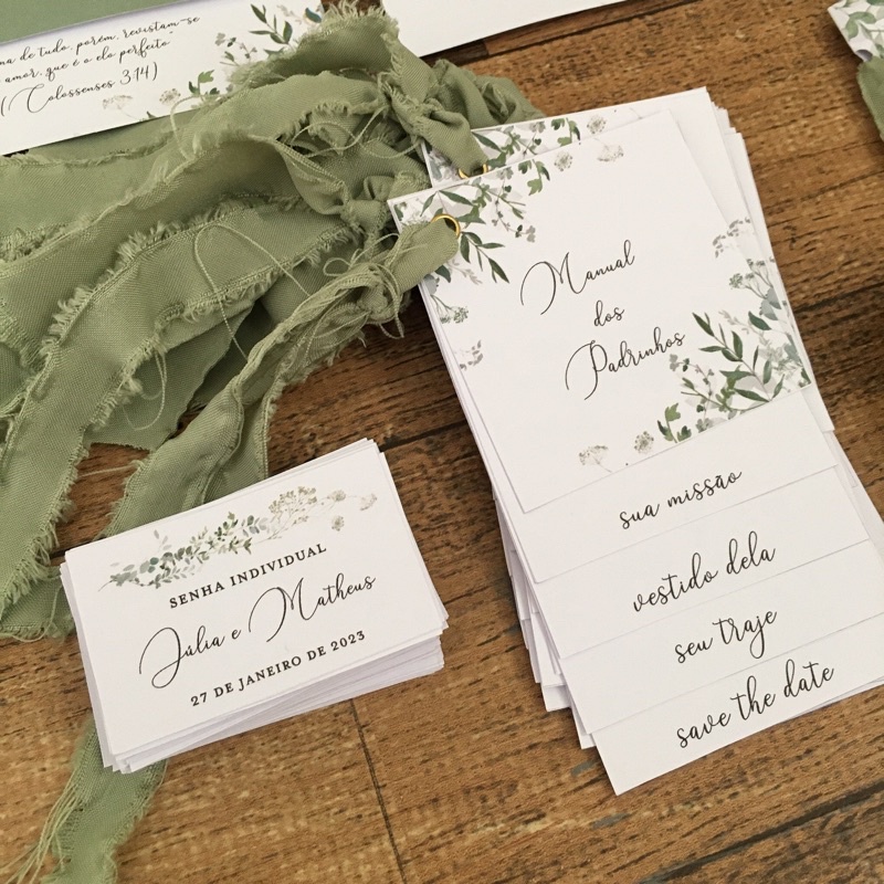 manual de padrinhos e madrinhas verde oliva em papel vegetal