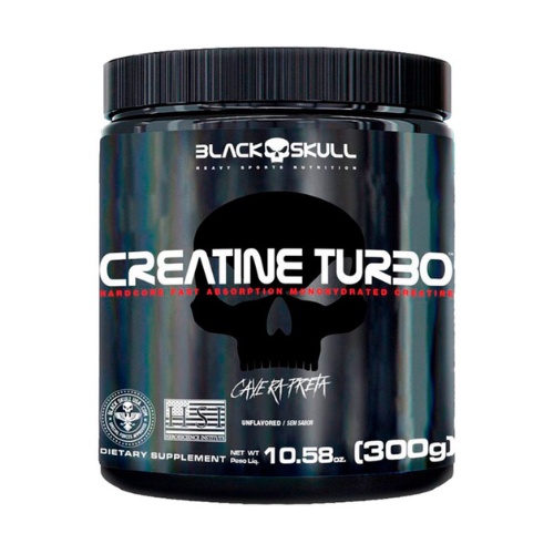 Suplemento em Pó Creatina Turbo Black Skull 300g Energia, Força, Resistência e Ganho de Massa Magra