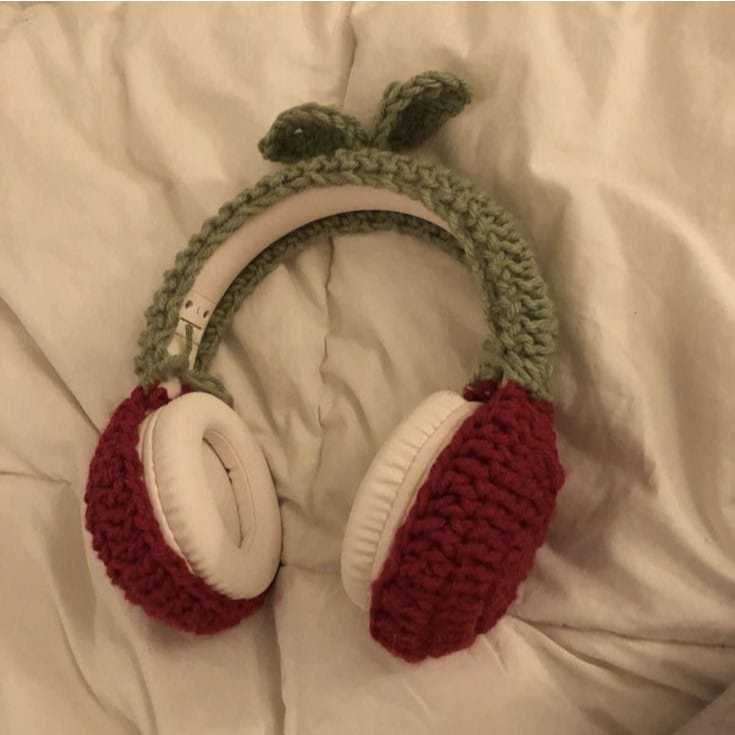 Capa para fone headset croche folha acessório para fone de ouvido kawaii fofo headphone