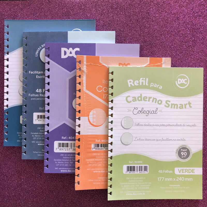 Refil para Caderno Smart DAC Verde Pautado com Linhas Brancas | Tamanho Universitário, Colegial ou Mini