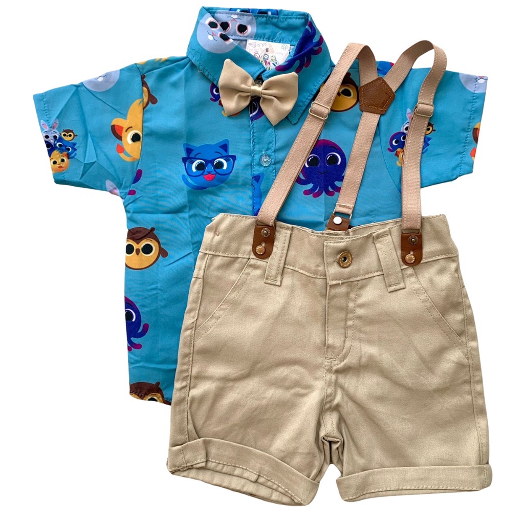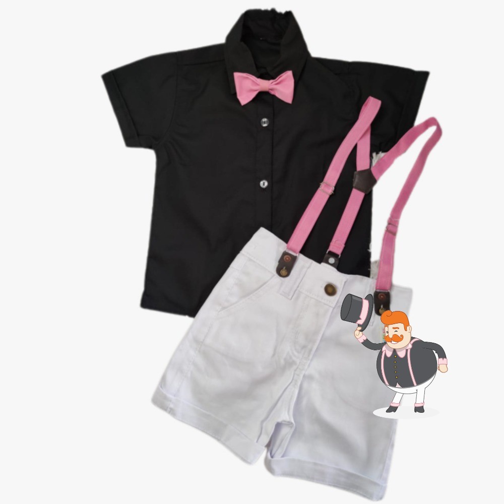 Roupa MUNDO BITA festa menino conjunto Camisa Gravata Bermuda e Suspensório