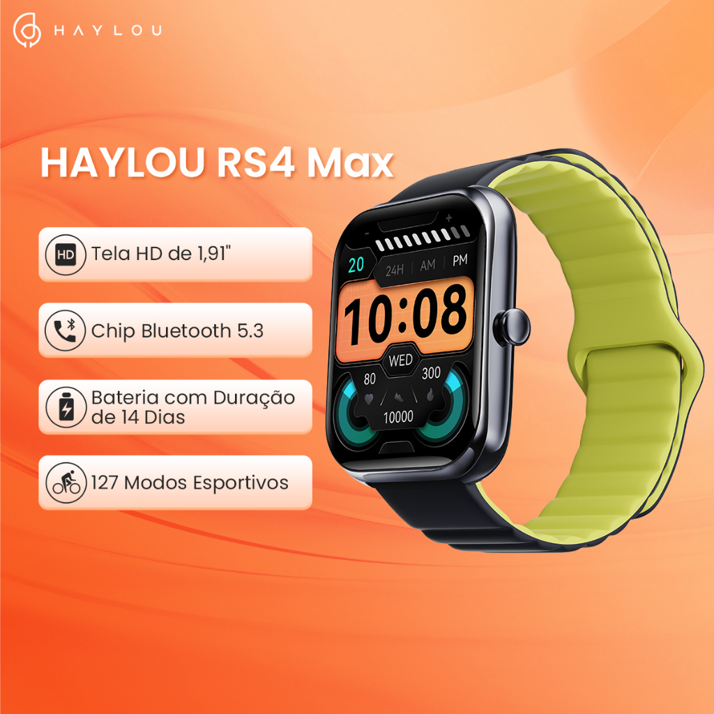 HAYLOU RS4 Max Relógio Smartwatch BT5.3 Chamadas Telefônicas Bluetooth Smart Watch para Masculino e Feminino Tela HD de 1,91" 14 Dias de Duração da Bateria IP68 à Prova D'água