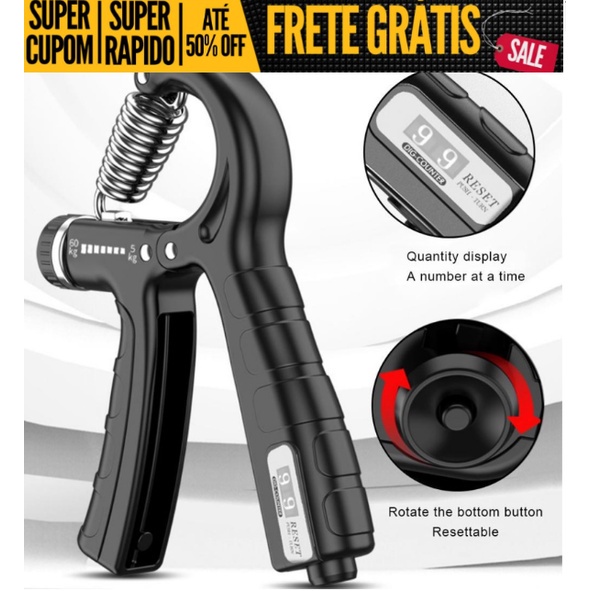 Hand Grip Contador Ajustável Flexor de Punho de 10 à 60kg Fisio Mola Reforçada Fortalece Mão Pulsos