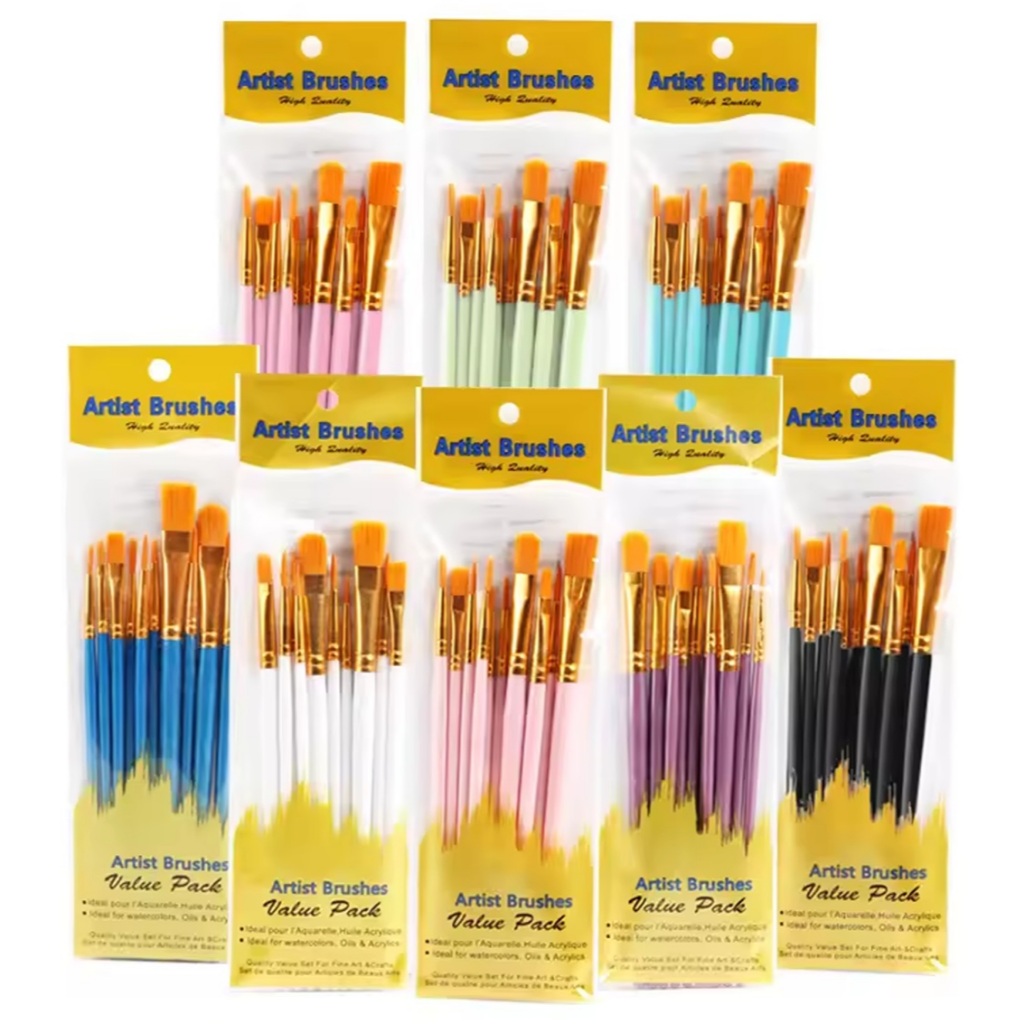 Conjunto De 10pcs Pincéis Para Pintura Kit Pincel Artista Múltiplos Médios Com Cabelos De Nylon Acrílico Aquarelle Aquarela A Óleo De Guache Grandes Suprimentos De Desenho De Arte
