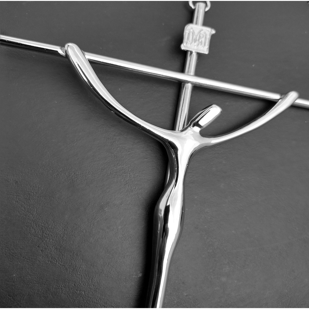 Crucifixo de Parede em Metal Grande Brilho Liso Acabamento Luxo Bom Gosto para Presente 28cm Cor Prata