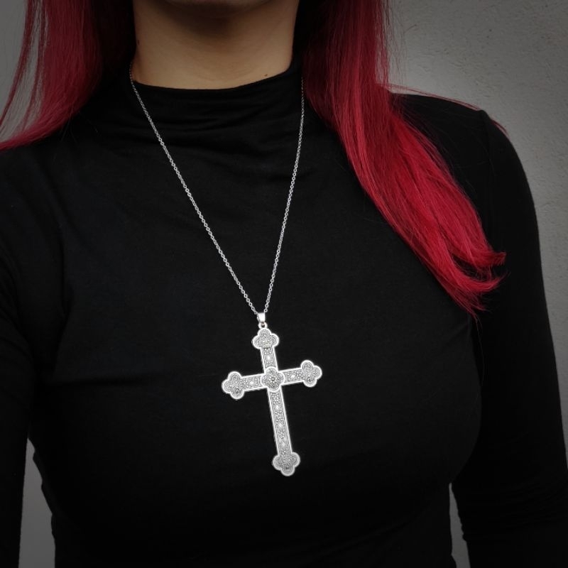 Colar aesthetic gothic crucifixo grande cristão católico cruz gótica prateada