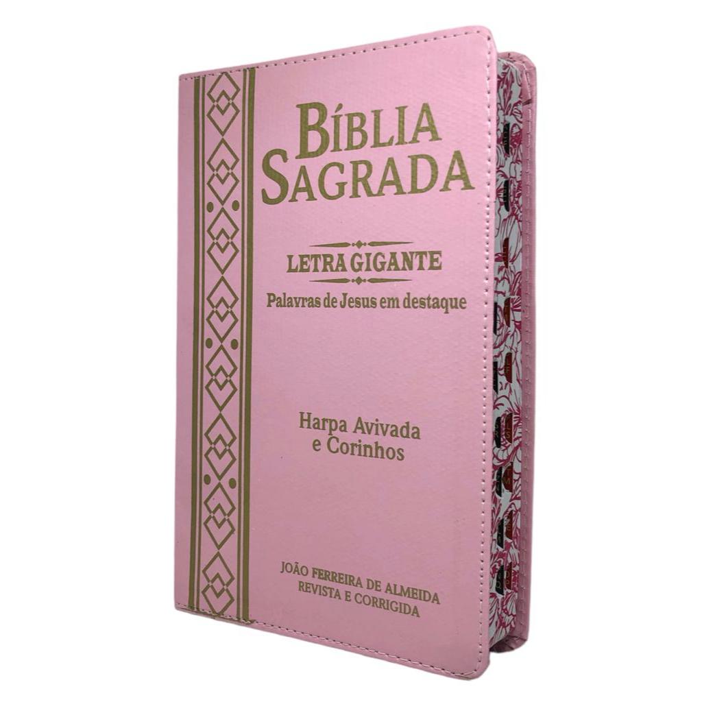 Bíblia Sagrada Com Harpa Cristã e Índice Capa Luxo Flexivel Evangélica Pentecostal Feminina e Masculina Cor Rosa Letra Gigante Grande Linguagem Arc Para Homem e Mulher