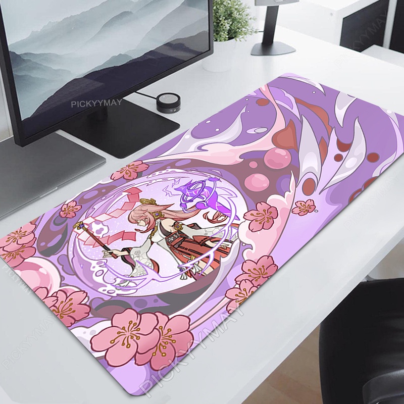 Tapete De Rato Genshin Impact Mouse Pad Yae MikoGamer Mousepads Para Jogos Mousepad Teclado Grande Mesa Computador