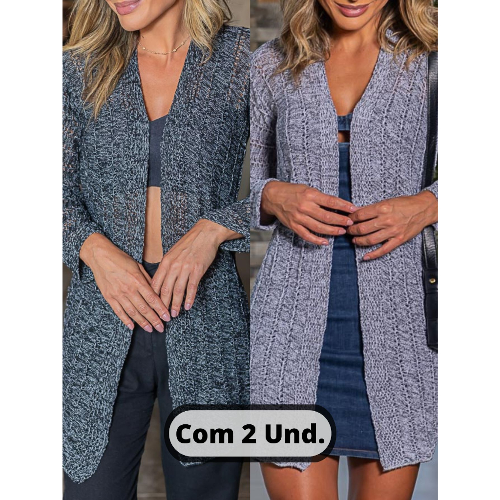 Casaquinho Feminino Cardigan Kit Com 2 unidades Casaco Kimono Tricot