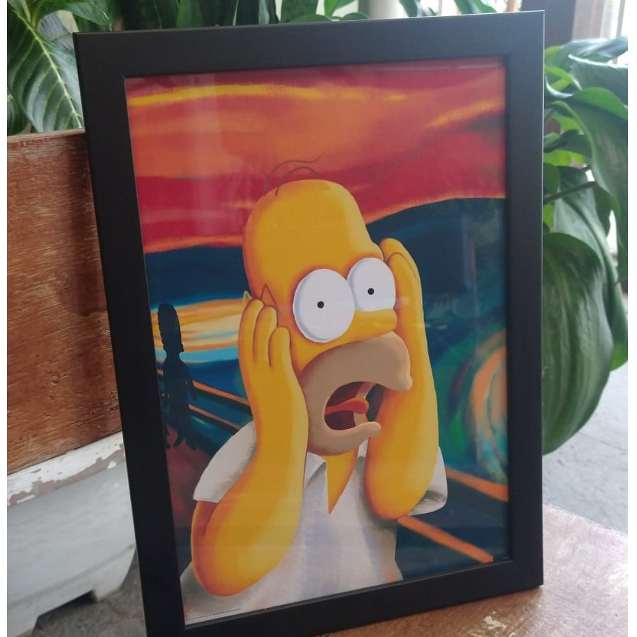 Quadro decorativo com moldura e vidro Os Simpsons Homer O grito marge maggie arte pôster