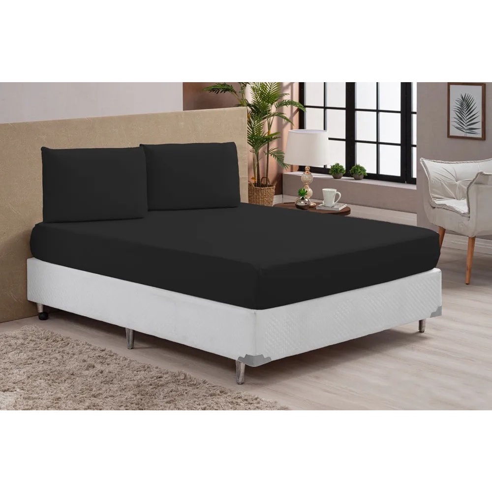 Jogo de Lençol Percal 180 Fios Casal Queen 3 Peças Preto