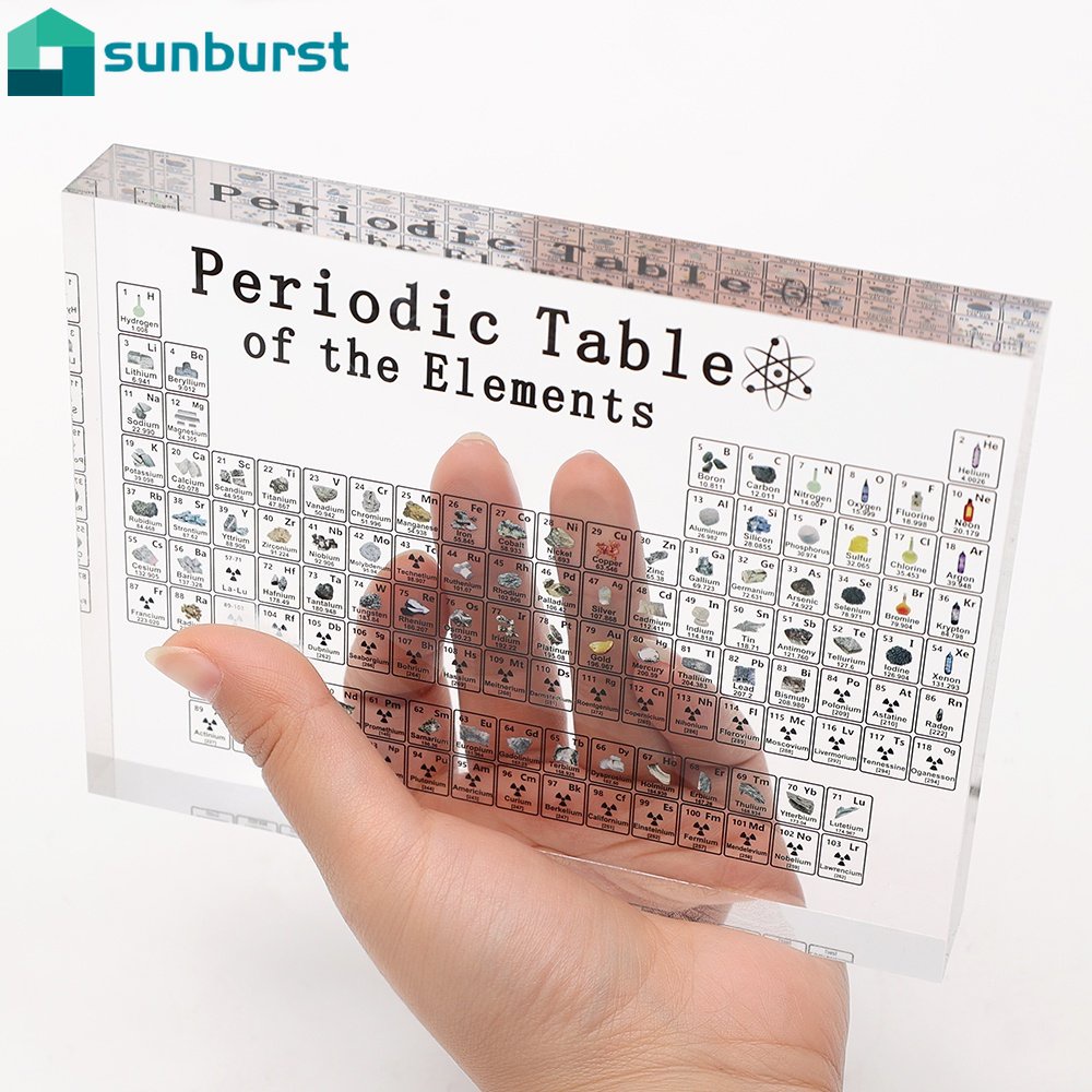 Tabela periódica em acrílico com elementos reais para crianças, presentes de aniversário o dia da escola, elemento químico, decoração do lar