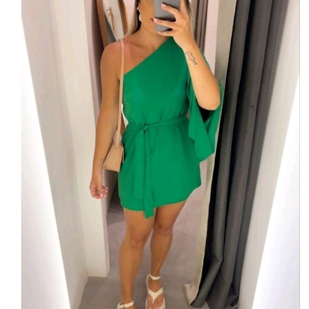Macaquinho vestido um ombro só mula manca soltinho com faixa Malu