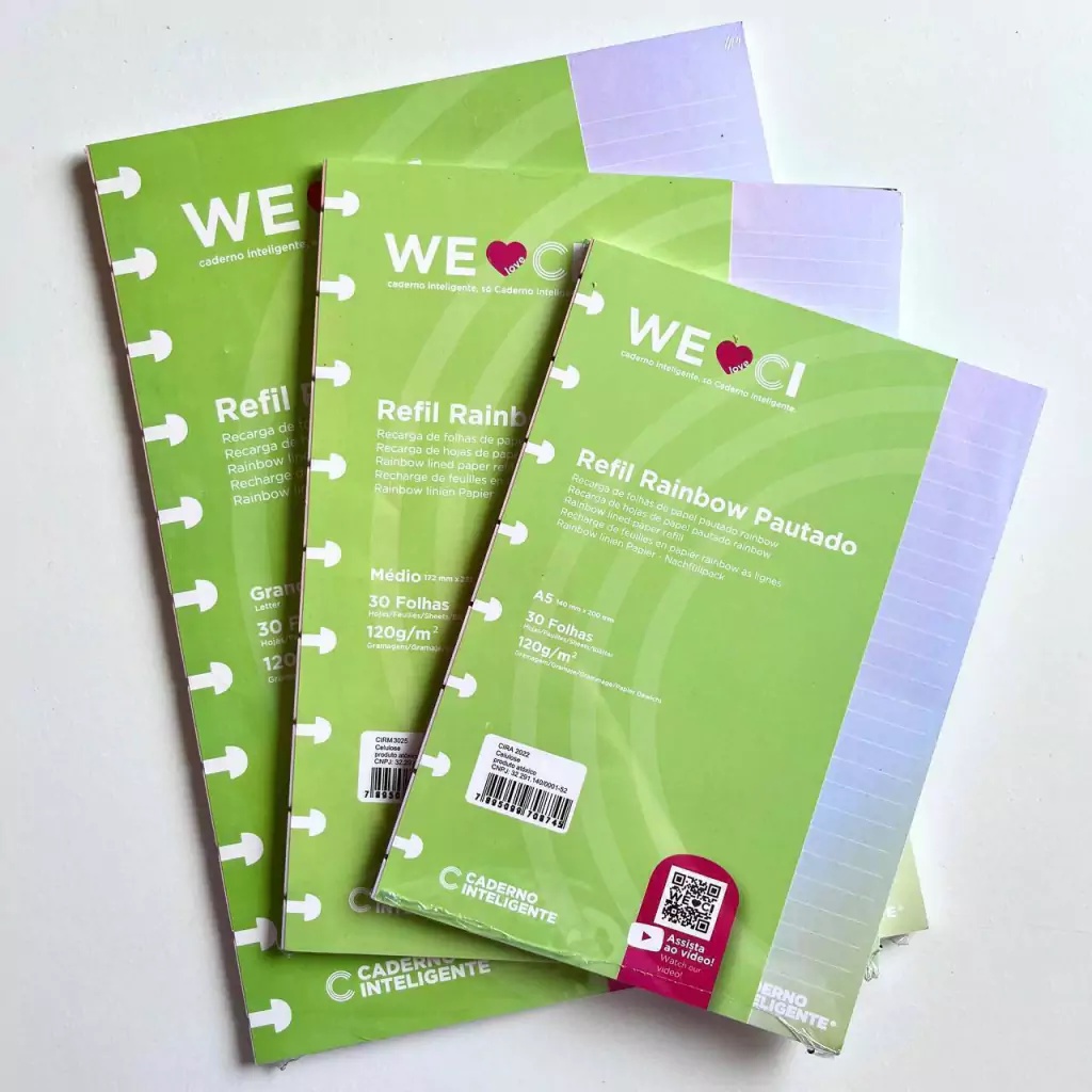 Refil Rainbow Pautado 120g para Caderno Inteligente | Tamanho A5, Médio ou Grande - 1 unidade ou kit com 3 pacotes
