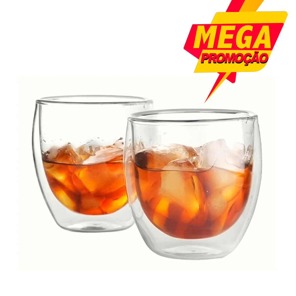 Conjunto 2 Copos Parede Dupla de Vidro 250 ml para Café Chá Suco Cerveja Chopp Copo Duplo Isolante KIT 2 Copos