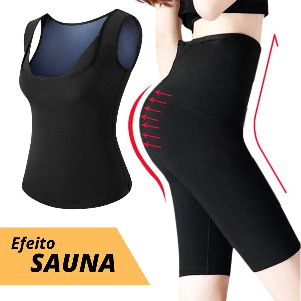Kit Regata + Short Queima Gorduras Barriga Masculina Camiseta Térmica Efeito Sauna Compressão Feminino
