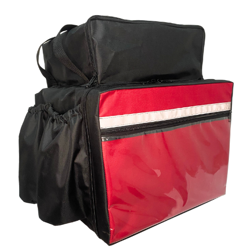 Mochila Bolsão Tecido PRETO e vermelho Sem Isopor Para Entregador Ifood - Restaurante - Lanchonete - Pizzaria e Entre Outros